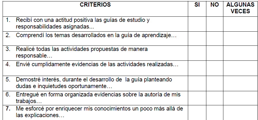 Después de haber culminado las actividades planteadas en la guía y en el proceso de formación que exigía la misma, con la mayor objetividad posible, responde con X según tu concepto...
