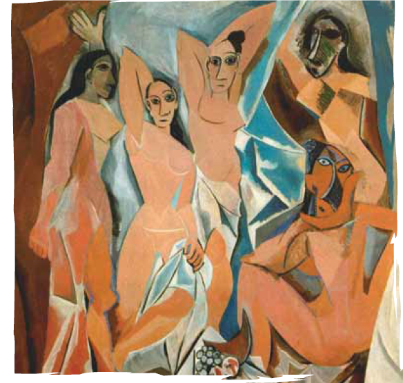 Las señoritas de Avignon, Pablo Picasso (1907). Obra perteneciente al movimiento vanguardista denominado Cubismo.